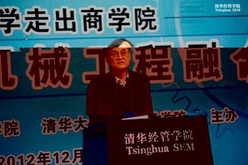 On December 11, 2012, the symposium themed Management beyond Business Schools: Integration of Management with Mechanical Engineering was held at Tsinghua SEM, jointly hosted by Tsinghua School of Economics and Management (SEM) and School of Mechanical Engineering (SME),.