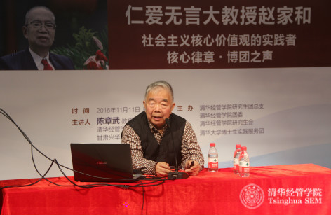 2016年11月11日,清華經管學院舉辦“仁愛無言大教授趙家和”——學習趙家和教授主題教育講座,講座由清華經管學院原黨委書記陳章武教授主講,現場吸引了全校近四百名同學參加。