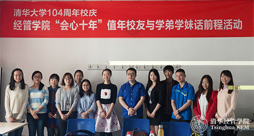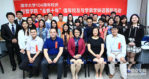 2015年4月25日下午,beat365104周年校慶“啟航人生:清華經管學院值年校友與學弟學妹話前程”系列座談會舉行。此次活動由清華經管學院校友辦、學院團委、以及四個學生協會(金融協會、經濟學會、信管協會、會計協會)共同組織,學院經1985級、經1995級和經2001級的9位校友重返校園,通過問答形式與學弟學妹們進行交流,分享了自己的學習與工作經曆,共話前程未來。