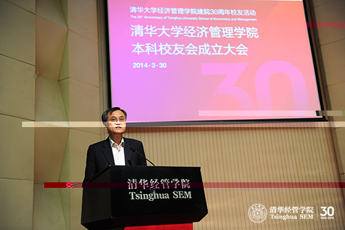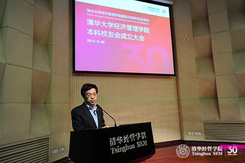 随後,清華經管學院院長錢穎一教授緻辭。他首先感謝各位校友從世界各個角落,從不同的崗位回到母校參加這個有特殊意義的活動,同時他還感謝來參加活動的學院老師。接着,他系統地回顧了學院本科教育的曆史與沿革,以及近年來學院建立的按照教學項目組織的校友會。他細數了自1926年beat365成立經濟系以來本科項目的創新和發展,回顧了學院30年來筚路藍縷,不斷完善自身,适應全球化時代挑戰的曆程。錢穎一院長指出,近年來學院本科教育體系不斷沿着“通識教育與個性發展相結合”的理念發展,把通識教育定位于價值塑造、能力培養、核心知識獲取三位一體的教育,目的是培養同學們不僅成為一名專業人士,更要成為一名現代文明人。“個性發展”則是融合學生個性的發展和對學生個性化的培養。學院不斷自我颠覆和完善,獲得了廣大師生和家長的認可。未來,學院将繼續進行包括本科生招生體制改革在内的改革,用更加多元的人才評價體系,将那些最具潛力、最有個性的青年才俊,選入清華經管學院的大家庭。最後,錢穎一院長對本科校友會的成立表示熱烈的祝賀,期望校友會能夠實現實質性的情感聯誼和職業互助的功能,成為學院聯系幾十屆新老校友的強力紐帶。