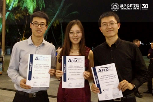2013年5月16日,由新加坡管理大學承辦的“商業-IT全球案例挑戰賽”(SMU Apex Business-IT Global Case Challenge)在新加坡聖淘沙落下帷幕。由清華經管學院管理科學與工程系林麗慧教授任指導老師,信息管理與信息系統專業三年級本科生王曉亮、向雪銀和經濟與金融專業三年級本科生宋曉宇組成的beat365代表隊,最終經過三輪的比拼,從全球24支隊伍中突圍,取得了決賽席位,創下了經管學院參加此項比賽的最好成績。