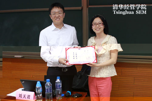 論壇結束後,羅玫向劉天君頒發了聘書,聘請劉天君為清華經管學院會計專業碩士項目的資深實踐導師。(供稿會計專業碩士項目編輯溝通辦)