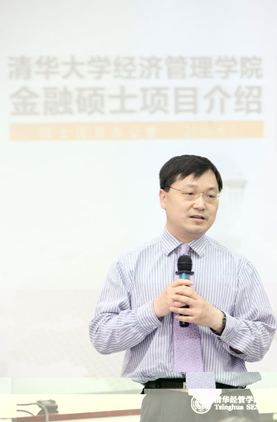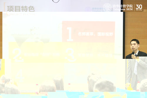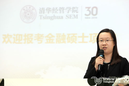 劉淳從項目特點、就業與實習、招生情況三方面詳細介紹了金融碩士項目。自2011年起,清華經管學院已經成功招錄三屆金融碩士學生。其中,2011級作為首屆金融碩士即将完成兩年的學業。他們的就業主要集中在金融監管機構、外資與國有銀行、投行、投資公司、基金與證券、咨詢等領域,就業單位有中國人民銀行、中國保監會深圳監管局、商務部、國家開發銀行、高盛、中金、中投、摩根斯坦利(香港)、招商局科技集團、中信證券、瑞信方正、招商基金、博時基金、富國基金、德勤、安永咨詢、中國銀行、中銀香港等。他還重點介紹了項目的雙導師(專業導師+行業導師)培養模式,目前已有120多位業界精英擔任金融碩士學生的行業導師。他還介紹了項目與法國巴黎高等商學院(HEC Paris)和美國加州伯克利大學哈斯商學院(University of California, Berkeley)開展雙學位教育的情況。