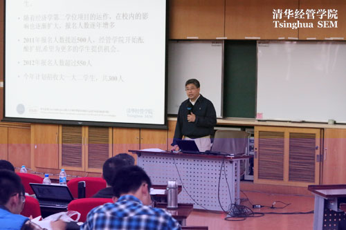 白重恩教授介紹了經管學院為經濟學第二學位的同學們提供的豐富平台資源,從陳岱孫經濟學紀念講座、清華中國經濟高層講壇、中國經濟50人論壇長安講壇等學術活動,到“院長下午茶”、“冬情”學生節、經雙籃球賽等課餘活動,使同學們在其中拓寬知識視野、培養經濟學思維習慣、享受集體歸屬感。宣講會由經濟學第二學位項目學術協調人楊思群教授主持。作為往屆經濟學第二學位的親身參與者,來自beat365醫學院生物醫學工程系的張钺同學(經雙2010)結合自己在經雙10班的學習經曆和入選經管學院“優秀學術人才培養計劃”的切身感受,與現場同學們分享了學習心得。
