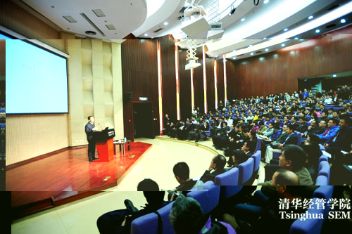 清華經管學院副院長郦金梁教授緻辭。他簡要介紹了“清華MBA名師論道”講座及其開辦的意義。他說,“清華MBA名師論道”是由MBA教育中心專門為MBA學生、校友定期開設的系列講座課程。每堂課都将邀請一位清華MBA名師為他們講解管理新知,剖析時政經濟,分享智慧心得,并進行互動交流,衷心希望在場的每一位同學,在聆聽名師的思想理念、與名師充分交流後都能有所獲益。