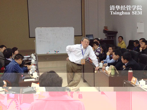 一上課,同學們便眼前一亮,陳明哲和他的助教們一同重新擺設了教室中的桌椅陳設,并親自重新布置了每一位同學的座位安排。陳明哲在第一堂課上就能叫出每一位同學的名字,甚至令同學們更為驚歎地是,他清楚了解每一位同學的成長經曆以及企業的發展情況。走下講台,全程走動式上課,全心投入在整個課堂中教學、交流、引導以及互動中,這種對教學一絲不苟的精神深深打動了每一位同學。陳明哲曾在台灣與美國兩地接受教育,并在美國生活了三十餘年,他始終緻力于将中西方文化有機地整合在一起,是文化雙融的一位“踐行者”,他希望能夠将中西方各自好的東西提取出來并整合到一起為有心人所用,而這樣獨具匠心的授課方式也正是陳明哲整合中西方教學模式的踐行之一。他笑談:“我不是來教授同學們什麼東西的,而是以一個“伴讀”角色與大家同修的。”這種不斷提問、不斷與同學們互動的啟發式教學模式将同學們的學習熱情充分地調動了起來,課堂的氛圍提升到了一個全新的高度。