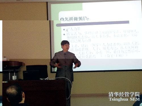 顔炳罡教授以《儒學和孔子》為題給同學們上了國學的第一課。顔教授是國内外知名的儒學研究者,同時是顔氏後人,承襲大儒的情懷和風範,顔老師在課堂中融貫古今,旁征博引,從一個簡單的問題“儒學是什麼”出發,向同學們系統性地詳述了儒學的由來以及儒學“道、學、政、行”體系所蘊藏着的豐富内涵,更進一步的将這一體系應用到同學們所面臨的企業管理問題之中來剖析儒學的教義,這讓同學在第一天的學習中不僅對儒學的基本要義有了一定的了解,更将這些要義與自己平日在工作中所面臨的管理問題所有機地結合在了一起。顔教授慷慨激昂、深入淺出地講解把同學們一下子帶到了千年前的古人教化中,“禮”“仁”“恕”等儒家核心理念在顔教授的一一分析講解下,大家開始走進儒學的世界。