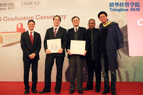 2013年1月15日,清華EMBA國際項目(TIEMBA)2013屆畢業典禮在清華經管學院舜德樓多功能廳舉行,48位來自世界各地的同學完成了為期18個月的學習,順利畢業。清華經管學院院長錢穎一、英士(INSEAD)國際商學院代理院長Peter Zemsky、清華經管學院EMBA教育中心執行主任王勇、英士(INSEAD)國際商學院高級學位項目主任Kristen Lynas以及TIEMBA項目的第一屆校友Joshua Halpern等出席了畢業典禮。很多同學的家人也來到現場共同見證這一難忘時刻。