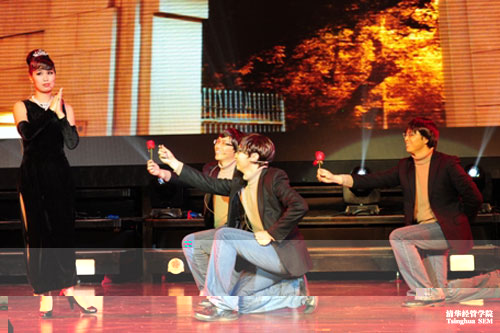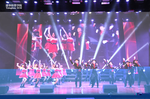 一年一度的清華MBA共聚同秀晚會,是MBA學子最具開放精神、最能體現班級凝聚力和個人才藝的活動。在如山的作業和沉重的考試壓力下,MBA同學們仍然投入了非常多的時間和精力準備晚會節目。航母STYLE、江南STYLE紛紛出動,畢業季引來“皇帝選妃”,邁克爾•傑克遜與僵屍“共舞”等好戲接連上演。而給大家留下最深印象的還是由2012級P4班黃咿婧導演、近30位同學登台表演的原創小品“大咖趕考戲清華”,小品以戲說的手法講述了一衆“大咖”:埃及豔後、瑪麗蓮•夢露、奧黛麗•赫本、藍精靈、超人等名人紛紛“穿越”,報考清華MBA的趣事。