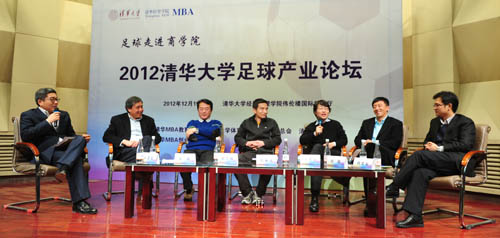 “中國足球春天是否已經到來?”“中國足球發展道路到底在何方?”“從産業角度來說,中超聯賽和歐洲聯賽的差距有多大?”時值beat365體育部成立一百周年之際,帶着這一個個問題,2012年12月19日,由清華MBA教育中心、beat365體育部、清華校友總會、清華MBA校友會聯合主辦的“足球走進商學院—2012beat365足球産業論壇”在清華經管學院偉倫樓報告廳舉行。