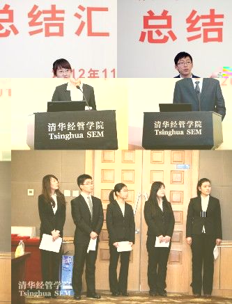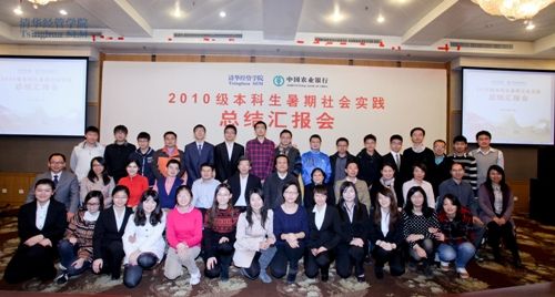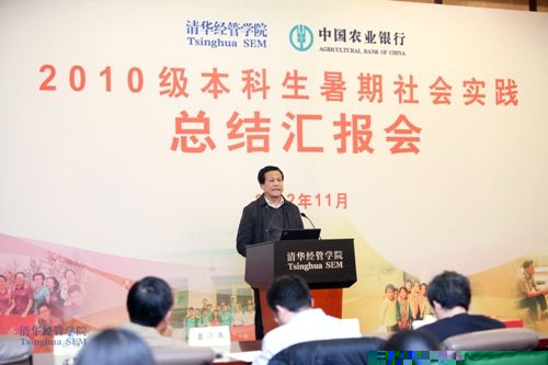 中國農業銀行總行戰略規劃部張璠副總經理、清華經管學院副院長夏冬林教授、教學辦主任朱玉傑教授、暑期社會實踐項目協調人肖勇波教授、帶隊教師徐瑜青、郭迅華、郭美新、李旻文、鄭捷、王蕾、劉霞、易成等多位教授出席了會議,2010級暑期社會實踐隊員以及2011級學生代表共70餘人共同參加了彙報活動。彙報會由清華經管學院學生工作組組長何平教授主持。