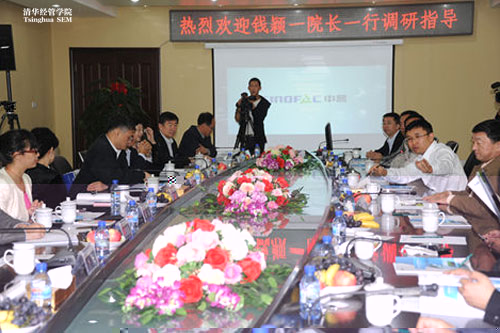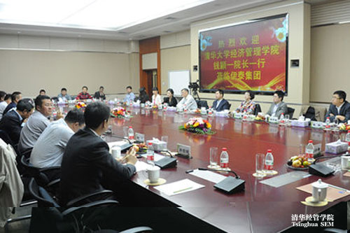 随後,錢院長一行來到内蒙古滿世投資集團,滿世集團集煤炭産運銷、房地産開發、百貨商貿、金融服務、生态旅遊五大産業協同發展,被評為内蒙古最具發展潛力品牌。在滿世集團黨委書記、副總裁、清華EMBA08級校友劉至主持下,錢院長與滿世集團董事長劉滿世、滿世集團總裁劉強就宏觀經濟走向、煤炭企業發展時機等問題進行了交流。