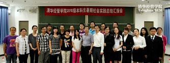 2012年9月13日下午,清華經管學院2010級本科生暑期社會實踐總結彙報會在六教分兩個會場舉行。此次暑期實踐活動項目協調人肖勇波教授、教學辦主任朱玉傑教授、學生工作組何平教授,以及徐瑜青教授、黃京華教授、郭迅華教授、郭美新教授、孟嶺生教授、羅婷教授、鄭捷教授、劉霞教授、王蕾教授作為評委出席了彙報會。