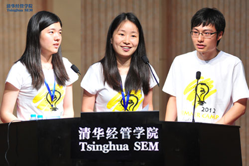 接下來,3位在校同學分别發言,與營員們分享了他們的感想。去年成功通過夏令營選拔、即将于8月份攻讀經管學院市場營銷博士的陳輝輝同學,深情描繪了她眼中的清華園,這裡不僅有“清芬園的香鍋、紫荊公寓的空調、人文館的小單間、秋天道路兩旁金黃的落葉、不解風情的工科男”,更有“最優秀的學者、最好的教育資源、最好的宿舍、最頂級的學術會議和論壇”。
