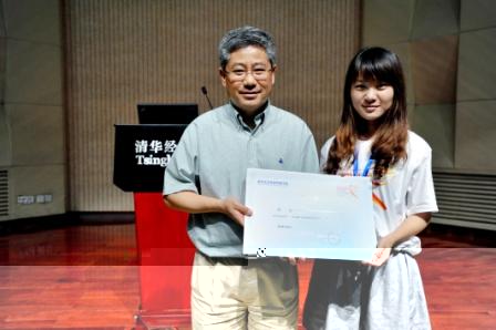 閉營儀式在志願者劉聰同學(經2008-2)連夜制作的《夏令營精彩瞬間回顧——清華園,不說再見》優美的音樂、精彩的圖片和營員們會心的微笑中開始。項目學術協調人與白重恩教授一起為10個碩博項目的參營學生代表頒發了結營證書。