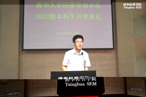 2012年北京市理科高考狀元李澤代表新生發言。他回憶起從小對清華的向往,對經管學院的憧憬,以及最終如願以償後的喜悅,相信大家将擁有“高的起點、正的方向、廣的視野、活的思維,将養成嚴謹踏實的學習習慣與學習作風,将在許許多多良師益友的陪伴中度過充實而溫暖的四年。”