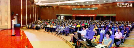 2012年8月16日上午,清華經管學院2012級本科開學典禮在偉倫樓報告廳舉行。院長錢穎一、副院長白重恩及黨委副書記焦捷等老師與200多名2012級本科新生一起參加了開學典禮。白重恩副院長主持了典禮。