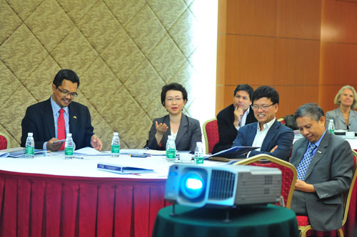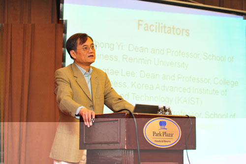歡迎儀式結束後,中國人民大學商學院院長伊志宏教授就“領導力和管理的戰略轉變”一題發表了主旨演講并主持了随後的讨論環節。當天下午,韓國高等科技大學KAIST商學院院長Byungtae Lee教授主持了題為“商學院的教學與研究”的讨論會。與會的商學院負責人結合自身的商學院管理與教學經驗與同行們開展了熱烈的讨論。