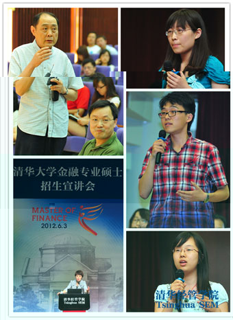 在答疑環節中,現場的學生紛紛踴躍提問,問題涉及到金融專業碩士夏令營報名事宜、國際交換、獎學金、授課語言、報考資格、錄取原則、就業等各方面。郦金梁教授和康以同教授針對同學們提出的問題進行了詳盡的解答。康以同指出,五道口金融學院今年不招收金融學碩士,計劃招收金融專業碩士100名。郦金梁表示,在金融夏令營和全國統考中,報考清華金融專業碩士都是一個項目統一入口,選報分班。考生在進入金融夏令營後,選報就讀班級(經管學院北京班、經管學院深圳班、五道口金融學院班)。(供稿 金融碩士項目辦公室 編輯 溝通辦)