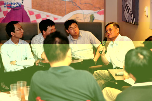 接下來進入了自由提問的環節,同學們就自己在學習、職業發展以及對學院的要求等方面提出了自己的疑問。整個活動同學們提出了十幾個話題,涉及課程設置、對外交換、創業資源、職業轉換和提升、與EMBA交流渠道以及經濟環境多個方面。對每一位同學的提問和建議,錢院長都認真坦誠地和同學們溝通。例如,11P3班的湯宏淵提到MBA創業者面臨的創業資源缺乏問題,希望學院能牽頭為創業者提供獲取資源的平台,這個問題也是很多準備創業的同學比較關心的。錢院長詳細地向大家講述了清華對創業的重視和為此做出的努力,4月份主辦創業年會以及剛剛成立的清華創業平台孵化園,都旨在整合創業資源,為創業者提供資金以及管理等全面的服務。說到創業和創新,又有幾位同學發表了自己的看法,錢院長向大家強調,創業是未來趨勢,國家的經濟轉型和競争力提升離不開創新和創業。創業的本質是創新,創業離不開管理,我們必須重視創業創新和管理的結合。