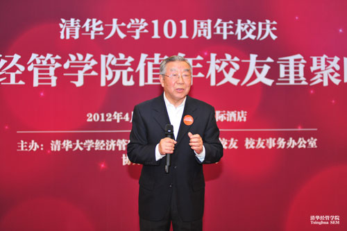 董新保老師代表學院全體離退休教師緻辭。首先,他對來自全國各地以及海外的值年校友返院參加清華101周年校慶活動表示歡迎;其次,他感謝校友在各自崗位上所做的貢獻,贊揚大家為祖國服務、為百姓服務的精神;第三,希望校友們繼續奮進,做出更大的成績,為清華經管學院的發展壯大做出更多努力。