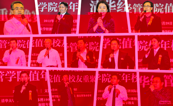 EMBA2002級校友劉俊君(美吉姆國際兒童教育中心中國區總裁)代表學院招收的第一屆EMBA發言,他說過去的十年,是中國經濟高速發展的十年。作為親曆中國大發展的EMBA同學,他們不僅見證了企業發展的輝煌,還肩負着更多的社會理想和責任。同時,他希望清華能夠發展成為世界一流大學,清華經管學院能夠成為世界首屈一指的商學院,清華EMBA項目能夠成為世界一流的EMBA項目。