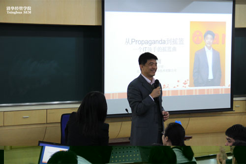 2012年4月18日晚,清華經管學院經1986級校友、北京世紀搖籃網絡技術有限公司首席執行官高翔先生回到學院,在“清華校友領導力”講壇發表了題為“從Propaganda到搖籃:一個IT鼓手的搖籃曲”的主題演講,為學弟學妹們上了生動的一課。