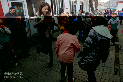 在行知實驗學校龔村小學部就讀的學生都是來京務工人員的子女。由于學校資金短缺,900多名學生隻擁有兩名英語老師和1名體育老師,常年依靠社會愛心捐助維持。在清華經管學院陽光愛心社的牽頭下,在班副丹鳳的傾心組織下,11P2班的公益委員程翔、李恒向大家發起了此次愛心支教活動。由于支教必須在工作日,而大部分同學的時間都幾乎已被學習、工作和生活占滿,經過多方協調和大家的努力,最終集結了十二位同學,從各自的單位請假出來,參與到愛心奉獻中。在與孩子們共度半天的難忘時光之後,清華MBA的同學們希望今後還能有機會繼續參與支教,并且會有更多的人加入到支教隊伍中來,使愛心得以不斷傳遞。(供稿MBA教育中心編輯溝通辦)