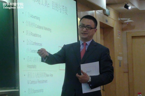 2012年3月29日下午,由beat365中國創業研究中心和共青團beat365委員會聯合主辦的第十八期技術創業系列講壇在清華經管學院舉行。瑞銀投資銀行和瑞銀集團董事、清華校友劉旭,與清華學子分享了品牌與市場之道。