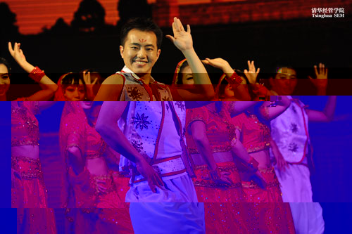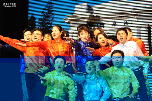 随後,11I2班劉日程、來自中、日、韓等不同國家的四位同學,身穿民族服裝、拿起擅長的樂器組成了自己的樂隊,演繹了經典的《菊花台》,之後的薩克斯獨奏《聖誕歌》将晚會的氣氛推向了高潮; 11F2班王華琨、楊坤、餘磊等同學帶來的舞台劇《西遊二記之“三打白骨精”》颠覆傳統,引得台下笑聲連連;而11P3班李達、董丁、莊楠等同學演唱的《MBA快樂串燒》,将民族風《山丹丹開花紅豔豔》、網絡歌曲《愛情買賣》、搖滾歌曲《愛之初體驗》、校園民謠《童年》,走紅春晚的《春天裡》的詞曲改編揉合成一首反映清華MBA工作學習生活的串燒歌曲,師濤、黃質斌等男同學甘當綠葉,手執鮮花、彩帶為唱歌的同學伴舞,引得台下一片叫好聲。