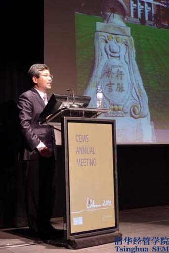 清華經管學院于2006年成為CEMS準學術成員學院。2010年12月,錢穎一院長參加了在荷蘭鹿特丹舉行的CEMS年會和CEMS戰略委員會會議。今年4月,學院正式提交了CEMS會員書面申請。5月,由CEMS執行主任François Collin帶隊的考察團再次到學院進行了為期三天的訪問,對學院提交的申請進行複核,随後在6月份舉行的CEMS執行委員會會議上,執行委員們一緻投票通過了接受清華經管學院為正式會員學院的決議。