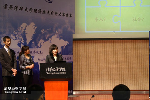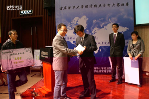 今年是“十二五規劃”開局之年,比賽要求參賽選手以家鄉經濟社會熱點和“十二五規劃”為切入點進行經濟政策的分析讨論。本次比賽共有來自23個院系的48支團隊、共144名同學參加。晉級決賽的8支隊伍按照“通過實證分析,給出政策評價,提出政策建議”的思路進行展示,對家鄉發展提出了自己的看法和建議。答辯過程緊張嚴肅而又妙趣橫生,十足地展現了清華學生的風采。同時,開放的決賽形式吸引了大批同學觀戰,現場觀衆的互動、思維火花的碰撞也進一步營造了比賽現場的氛圍。