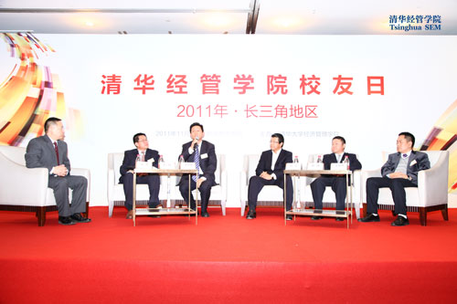 接下來,話題轉向“戰略性新興産業的發展”,上海盤谷房地産有限公司總經理宋海(經1980),國務院國資委信息中心副主任、總經濟師張銘(經碩1985),杭州中能汽輪機動力有限公司總經理李錫明(熱能1985),浙江省科技廳黨組書記、廳長蔣泰維(經博2005),及谷歌中國區總裁劉允(清華-中歐-哈佛高級經理人課程)分别發表了各自的見解。