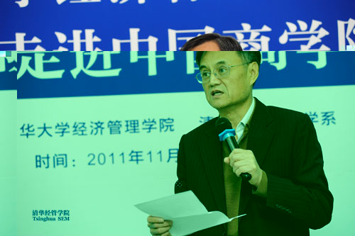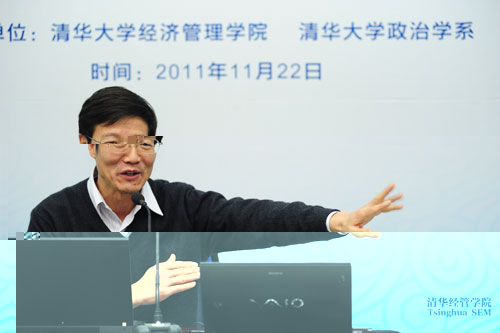 錢穎一院長在緻辭中首先回顧了老清華經濟學系(經管學院的源流)與政治學系的曆史。經濟學系和政治學系均為清華在1926年首批成立的學系,至今85周年。經濟學系和政治學系同屬1929年成立的法學院,而且除了暫短時間外,法學院中隻有這兩個系。1952年院系調整後,這兩個系都停辦了。改革開放後,這兩個系先後恢複。此次論壇可謂兩系在60年後的首次學術合作。錢院長談到,去年經管學院舉辦了“心理學走進商學院”論壇,今年上半年又舉辦了“社會學走進商學院”論壇。連同這次的“政治學走進商學院”論壇,經管學院同人文社科學院已經是第三次聯合舉辦論壇。這顯示了大學之中的商學院與其他社會科學學科緊密聯系的優勢。這種優勢是獨立商學院不具備的。